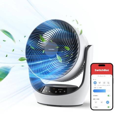 SwitchBot サーキュレーター 静音 首振り Alexa - スイッチボット 扇風機 ~30畳 DCモーター 節電対策 省エネ 充電式バッテリー搭載 コードレス 無段階風量調整 リモコン付き 梅雨対策