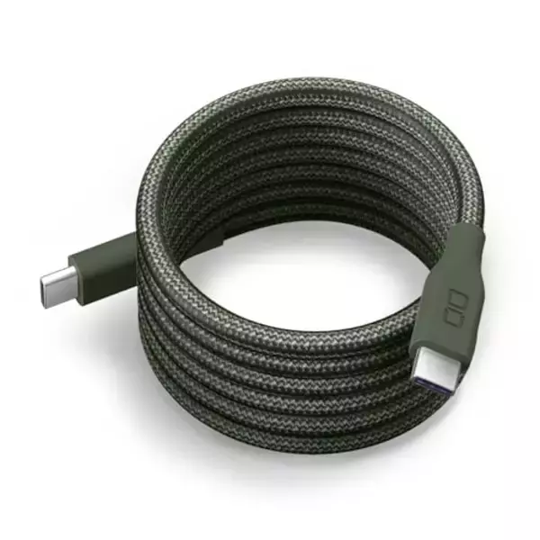 CIO スパイラルケーブル 1m Type-C PD 240W データ転送 480Mbps 磁石付き マグネット吸着 形状記憶 CtoC(モスグリーン)