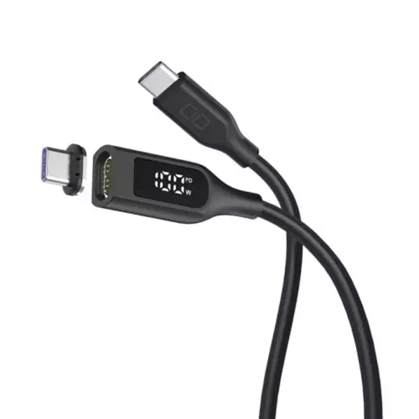 CIO マグネットシリコンケーブル [液晶ディスプレイ付きモデル] 100W対応 USB Type-C 磁石で脱着 防水規格 IPX5対応 iphone15 タイプC ケーブル (ストレート,ブラック, 2m)
