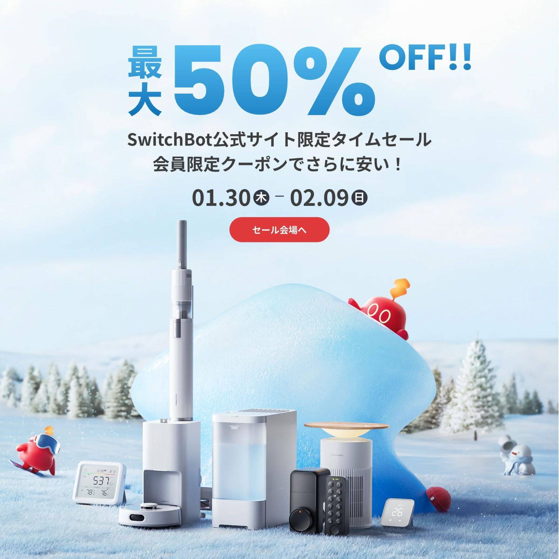 今回のセールは、公式サイトにて対象のSwitchBot製品が最大50%OFFになるというもので、2月9日まで開催されています。
