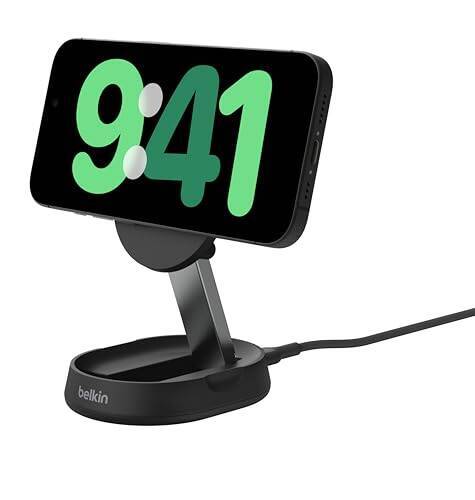 【VGP 2022受賞】 Belkin MagSafe対応 磁気ワイヤレス充電スタンド 急速充電 iPhone 15 / 14 / 13 / 12 シリーズ対応 USB-Cケーブル(2m)付属 電源アダプタ付き 7.5W ホワイト WIB003dqWH