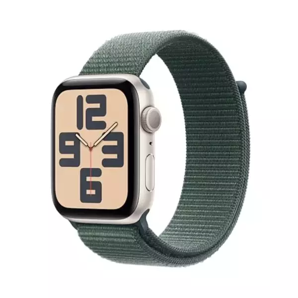 Apple Watch SE(第 2 世代)[GPS モデル、44mm ケース]スターライトアルミニウムケースとレイクグリーンスポーツループを組み合わせたスマートウォッチ。フィットネストラッカーと睡眠トラッカー、 衝突事故検出、心拍数のモニタリング、Retina ディスプレイ、耐水性能