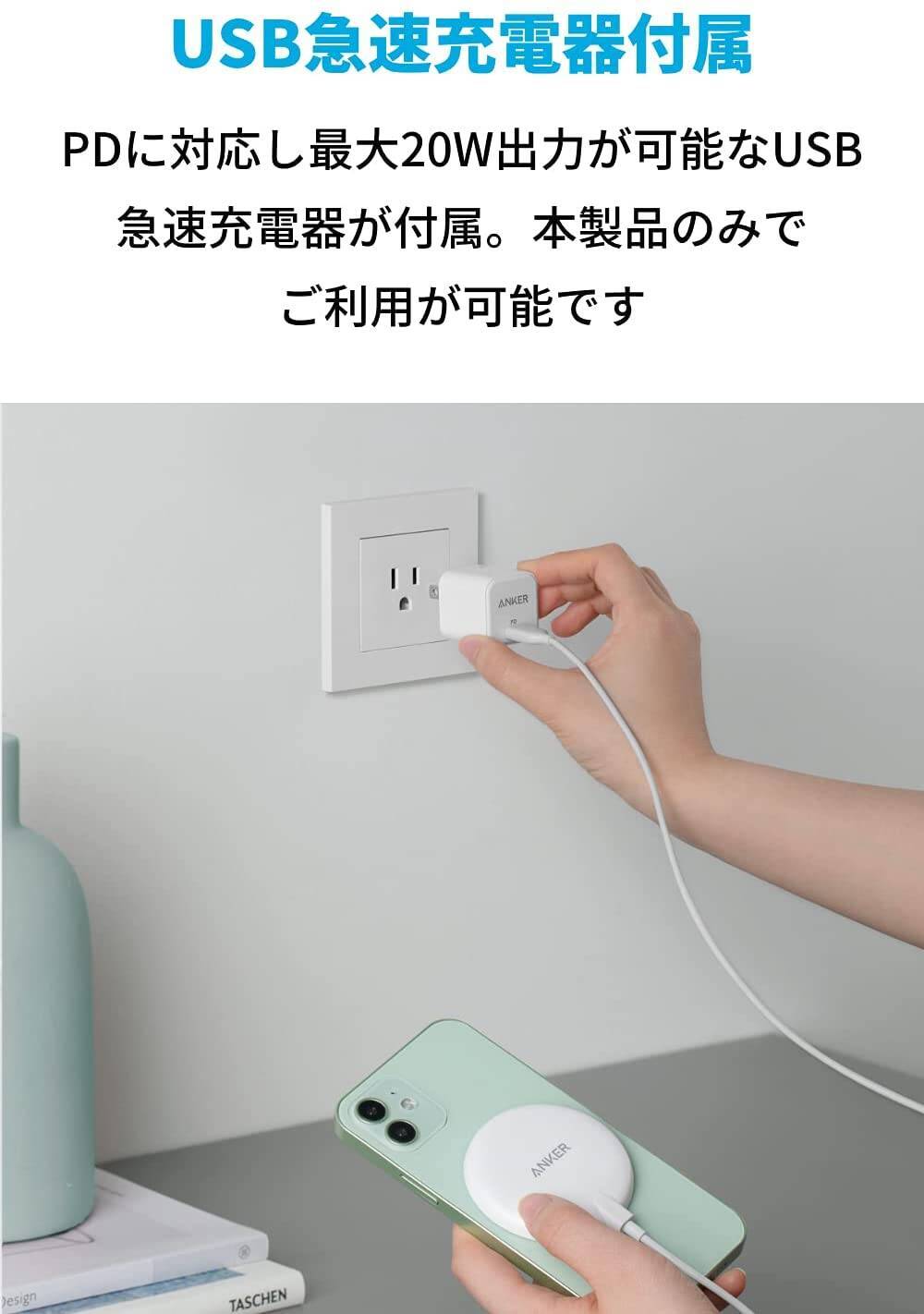 既に販売されている「Anker PowerWave Magnetic Pad Lite」にUSB急速充電器をセットにした製品で、主な特徴は次のとおり: