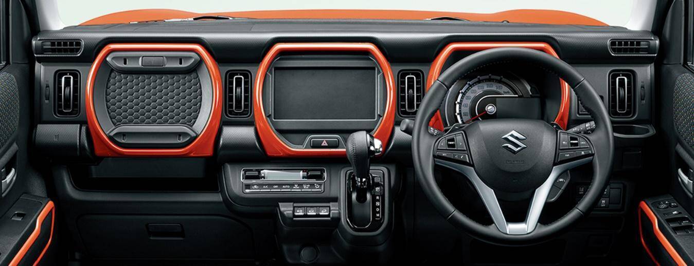 さらに、メーカーオプションの「プレミアムインテリアパッケージ」は、ブラックとタンのカラーコンビネーションを採用し、カラフルなストライプパターンの生地にタンカラーの合成皮革を組み合わせる事で、軽自動車タイプのSUVでは高級感を重視しています。