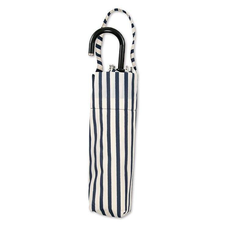 曲がり手元に猫と肉球のモチーフを掛け合わせた、可愛くお洒落な折り畳み傘。UVカット90%以上で雨の日も紫外線ケアができ、付属の傘袋には吸水生地を使用しているので濡れた後の収納時も安心です。カラーは、ブラウンとグレーの2色。ネイビーカラーのストライプ柄も( https://www.shop-shimamura.com/item/0130700000918/?cl=208 )。サイズは、全長:29㎝、親骨の長さ:55㎝、直径:97㎝となっています。