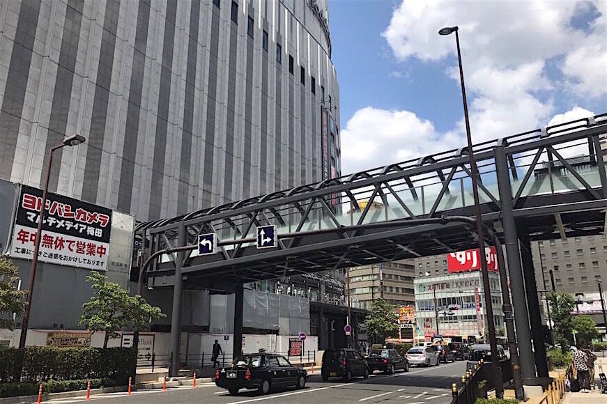 そのヨドバシ梅田はJR大阪駅から近くて遠い場所として有名でした。JR大阪駅の北側に出ればヨドバシ梅田の姿は見えるものの、目の前の道路に横断歩道はなく、地下街を通ったり、向かいのグランフロントを経由するなどしなければたどり着けないため、駅員にヨドバシ梅田への行き方を尋ねる人の姿も日常的な光景となっていました。