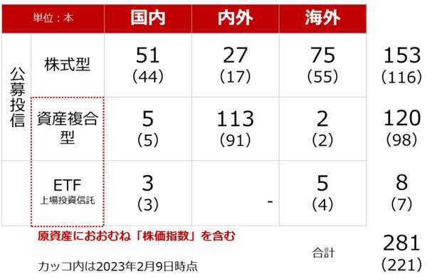 図:つみたてNISA対象商品(281本)(2024年2月8日時点)