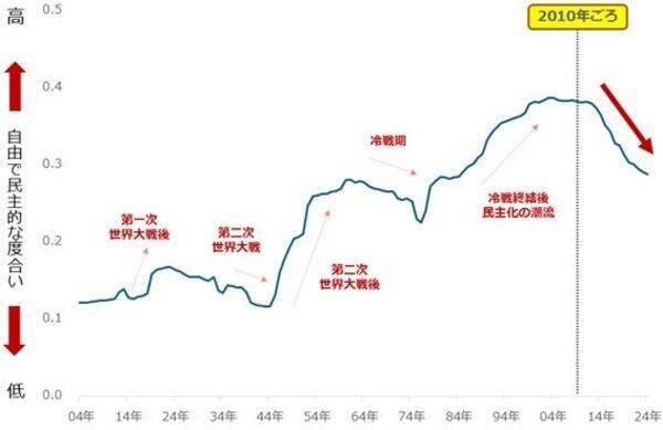 図:世界の自由民主主義指数(人口加重平均)