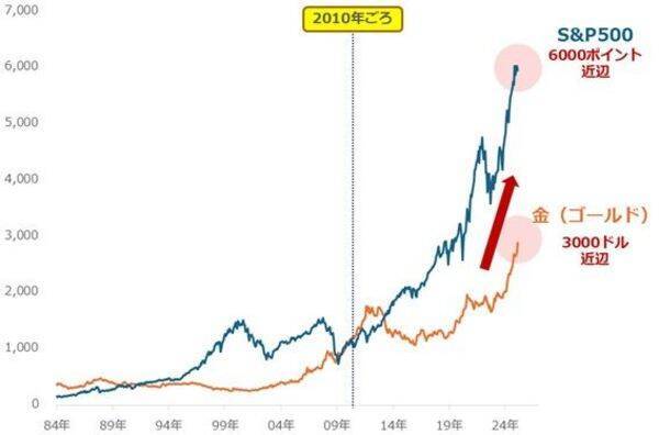 図:S&P500指数と金(ゴールド)価格の推移