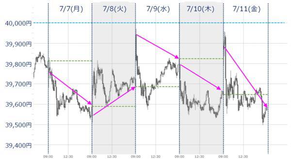 <図2>日経平均の5分足チャート(2025年7月7日から11日)