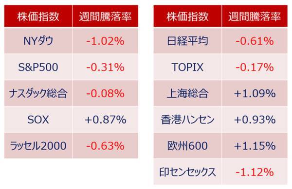 しかしながら、実際のところ、下の図4で先週の週間騰落率を見ても分かるように、米NYダウの下落率の方が日経平均よりも大きくなっているなど、必ずしも日本株だけが突出して弱かったわけではありません。