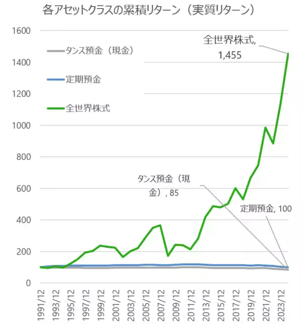 出所:全世界株式はMSCI Inc. ACWI Gross JPY(信託報酬などのコストは考慮せず)期間:1991年12月~2024年12月