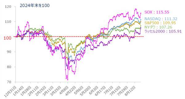 <図2>米主要株価指数のパフォーマンス比較(2025年8月22日時点)