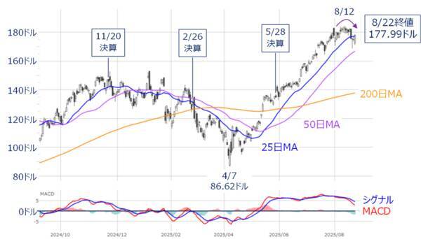 <図3>米エヌビディア(日足)の動き(2025年8月22日時点)