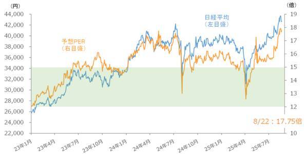 <図5>日経平均(日足)とPER(2025年8月22日時点)