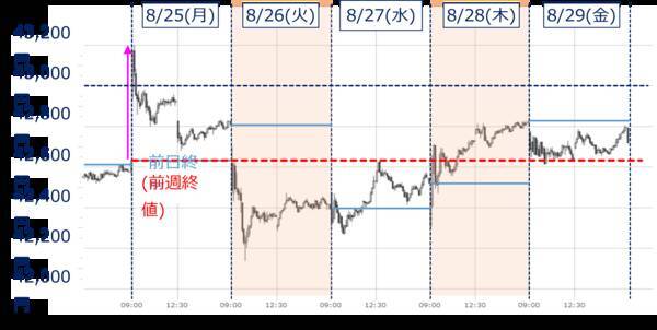 <図1>日経平均(5分足)の動き(2025年8月25~29日)