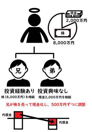 長男は自分でも株式投資をしているが、次男は投資に興味がなく、今後も投資をしたくない、証券口座も開くのは面倒だ…、ということで、有価証券は全て長男、預金は全て次男が相続する形で遺産分割協議がまとまったとします。