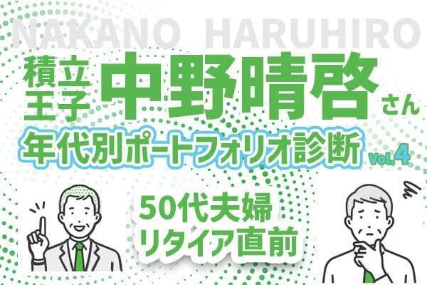 積立王子こと、中野晴啓さんが20~60歳代の年代別ポートフォリオをチェック! 今回はお子さん2人が独立済み、住宅ローン完済間近の50代男性のポートフォリオを分析&解説。積立王子の採点は? 改善点を聞いてみました!