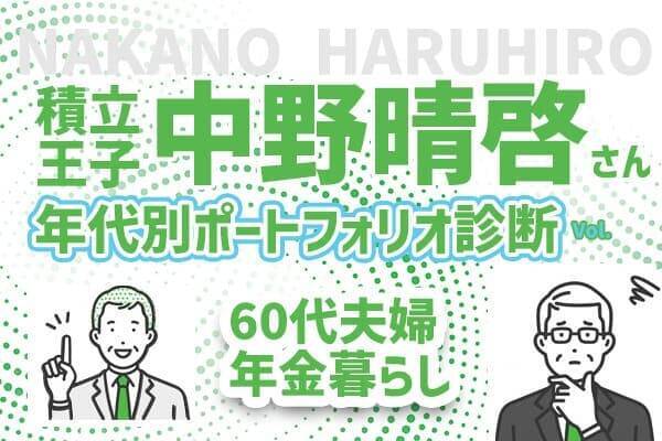 積立王子こと、中野晴啓さんが20~60歳代の年代別ポートフォリオをチェック! 今回は定年退職後の年金生活60代夫婦のポートフォリオを分析&解説。積立王子の採点は? 改善点を聞いてみました!