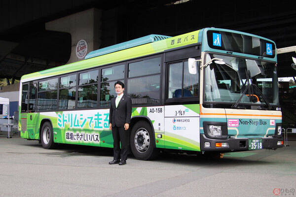西武バスが2020年9月7日(月)から、東京および埼玉を走る一部の路線バス車両をラッピングしたうえで、「ユーグレナバイオディーゼル燃料」を使用しています。その車両が9月17日(水)に報道陣へお披露目されました。