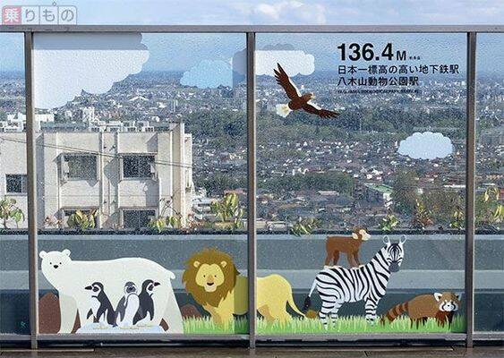 神戸の既存駅が「高さ日本一の地下鉄駅」に八木山動物公園駅は2015年12月に開業した仙台市営地下鉄東西線の西側の終点で、ホームや線路は地下にあります。ただ、丘陵地帯に位置するため、レール面の標高は136.4m。地下2階の駅からエレベーターで上れる駅舎屋上の「八木山てっぺんひろば」からは、仙台の街を展望できます。