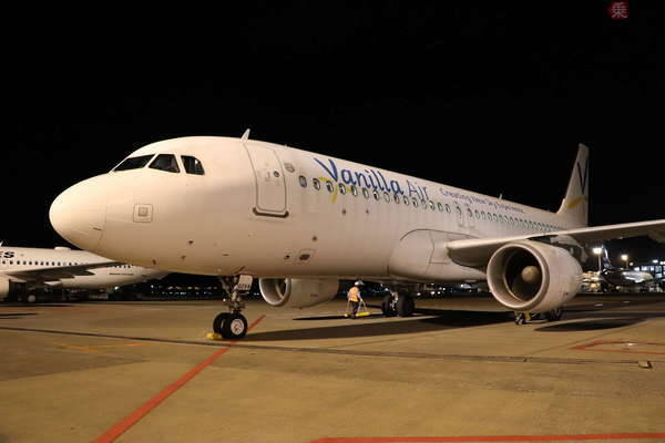 バニラエアの成田空港最終到着便(2019年10月26日、乗りものニュース編集部撮影)。