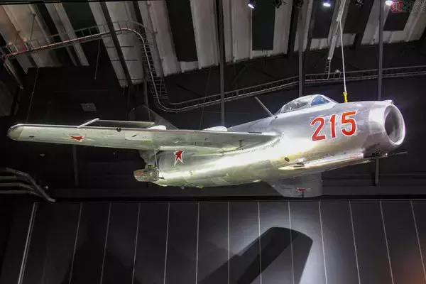 スウェーデン空軍博物館に展示されているMiG-15。戦闘機の歴史を語るうえで「ミグ」の名は外せない(竹内 修撮影)。