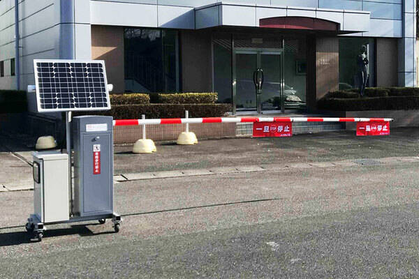 キャスターのついた架台に、駐車場の入口で見られるような遮断バーがついたもので、路上駐車しようとする車両の侵入を物理的に抑制。自動運転バスの運行システムとインターネットを通じて連携することで、バーが自動開閉し、自動運転バスだけが停留できる専用空間を作り出すといいます。