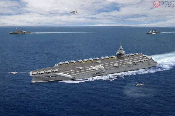 パルリ軍事大臣はPANGの戦闘機搭載数を、「シャルル・ド・ゴール」と同じ30機程度と述べています。「シャルル・ド・ゴール」(満載排水量4万2000トン)に比べて大型化しているにもかかわらず、戦闘機の搭載数が変わらないのは、PANGが搭載を想定している新戦闘機「NGF」が、「シャルル・ド・ゴール」の搭載機ラファールMに比べて、大型の戦闘機になる可能性が高いためと考えられます。