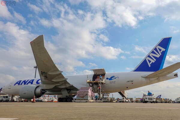 なお、2020年のANAグループでは、コロナ禍のなかで、貨物専用機による臨時便・チャーター便の設定に加え、10月に成田~フランクフルト線、12月に成田~バンコク線に大型貨物機「ボーイング777F」をそれぞれ投入。旅客機に乗客を乗せず、貨物のみを搭載し輸送する便も運航しています。