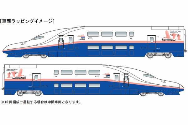 E4系は2021年秋頃引退へラストランロゴのラッピングイメージ(画像:JR東日本)。