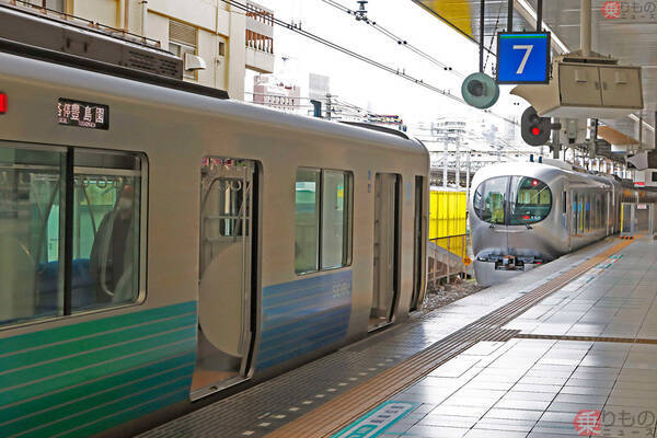 なお、特急ホームは7両分の長さですが、新型特急車両の001系「Laview」は8両編成のため、7番線にほぼ1両がはみ出します。そのため一般列車の8両編成の停車位置は次駅側へずれているほか、「Laview」が特急専用ホームに停車している間、7番線に10両編成が停車しないようなダイヤを組んでいます。