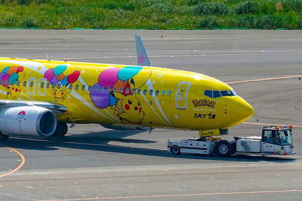 「ピカチュウジェット BC」はポケモン社とのコラボ塗装。ポケモン社が立ち上げた「そらとぶピカチュウプロジェクト」に、スカイマークが賛同したことから、今回実現しました。同プロジェクトでは、この機を沖縄に就航させることを始め、沖縄県のお土産品、交通機関、観光施設などとの取り組みを通じて、沖縄県の魅力を発信していくとのことです。