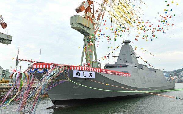 進水したもがみ型護衛艦の3番艦「のしろ」(画像:海上自衛隊)。
