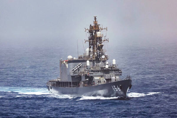 ソマリア沖アデン湾を進む海上自衛隊の護衛艦「せとぎり」。同艦は2021年5月には同海域でフランス空母「シャルル・ドゴール」とも訓練している(画像:イギリス海軍)。