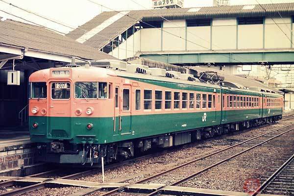 「昭和の新宮夜行」に使用された165系急行形電車の同型車(1989年、恵 知仁撮影)。
