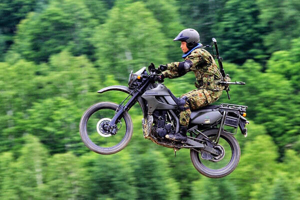 偵察用オートバイは正式名称「オートバイ(偵察用)」といい、2021年現在、ベースとして用いられているのがカワサキの「KLX250」です。敵部隊への偵察行動、災害発生時の被災状況確認などで 使われています。
