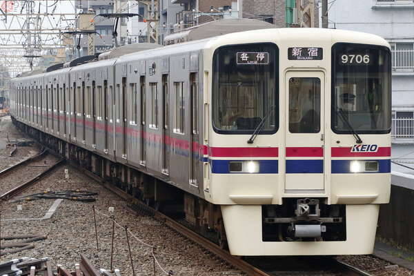 笹塚駅に進入する9000系電車の各駅停車新宿行き(伊藤真悟撮影)。