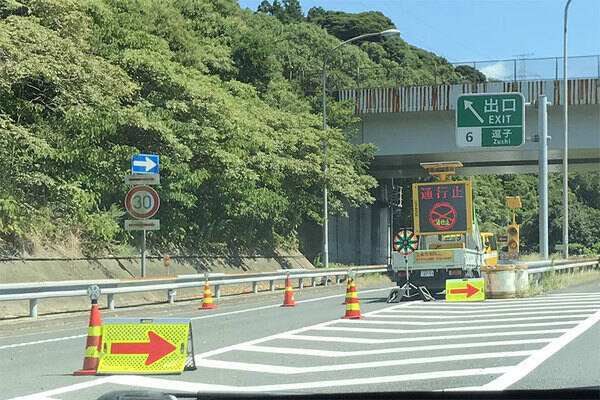 不通となっている逗子IC(乗りものニュース編集部撮影)。