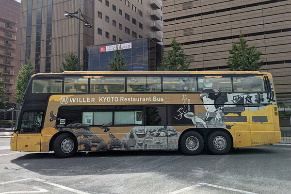 京都で運行されるウィラーのレストランバス(たかくわあいこ撮影)。