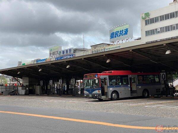 新潟駅北側の万代口で、新駅舎や駅前広場の整備事業が進行しています。1958(昭和33)年に完成した3代目駅舎も解体されていますが、同じく万代口にあるバスターミナルも消滅しようとしています。