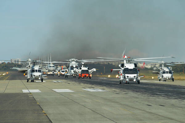 海上自衛隊の航空集団創設60周年を記念して厚木航空基地で行われたエレファントウォークの様子(画像:海上自衛隊)。