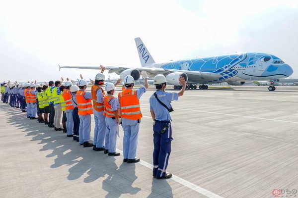 ANAのA380での遊覧チャーター。井上新社長も同企画に携わった一人だった(2020年8月、乗りものニュース編集部撮影)。