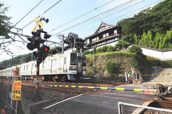 清見寺を分断するJR東海道本線と踏切(2019年10月、小川裕夫撮影)。
