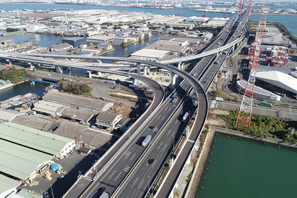 事業化に向けて一歩前進名二環と伊勢湾道が接続する飛島JCT(画像:愛知国道事務所)。