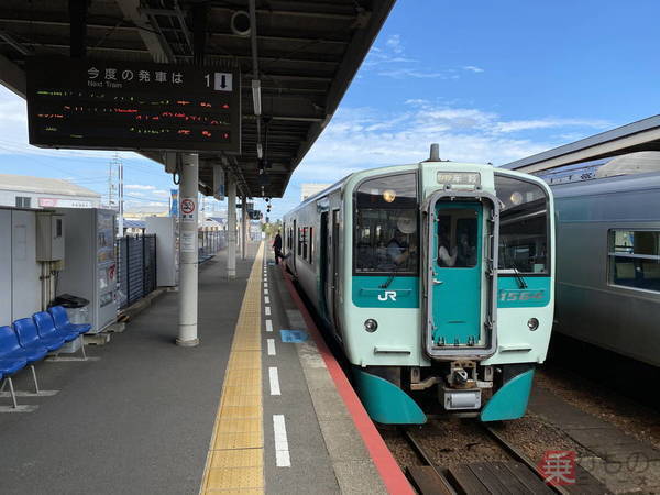 並行するバスと運賃が共通になる牟岐線の列車(乗りものニュース編集部撮影)。