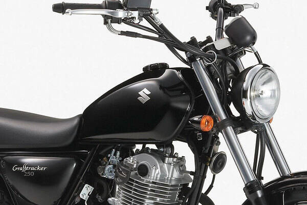スズキから2000(平成12)年に発売された「グラストラッカー」。翌年には、ホイール径を拡大した「グラストラッカービッグボーイ」も登場しています。いずれも250ccです。
