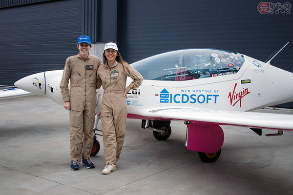 単独世界一周飛行の女性最年少記録を樹立したザラ・ラザフォードと肩を組む弟のマック・ラザフォード(画像:MackSolo)。