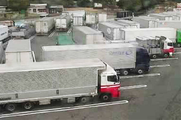「前進で入って前進で出る単列のレイアウトですと、マスに駐車中のトラックの後ろに横づけする形で、通路に停めるトラックが多かったのです」
