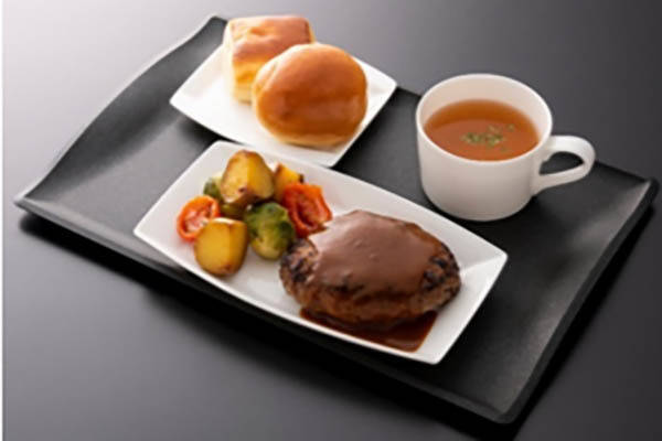 「SUITE DINING」として提供される「ANAオリジナルビーフハンバーグステーキセット」のイメージ(画像:ANA)。
